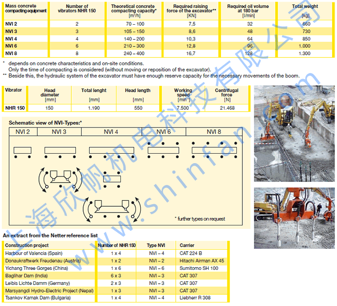 大塊混凝土壓實系統與NETTER NVI液壓 插入式振搗器NHR 150 ,壓實粗粒度的大體積混凝土 對于安裝于液壓挖掘機和裝載機